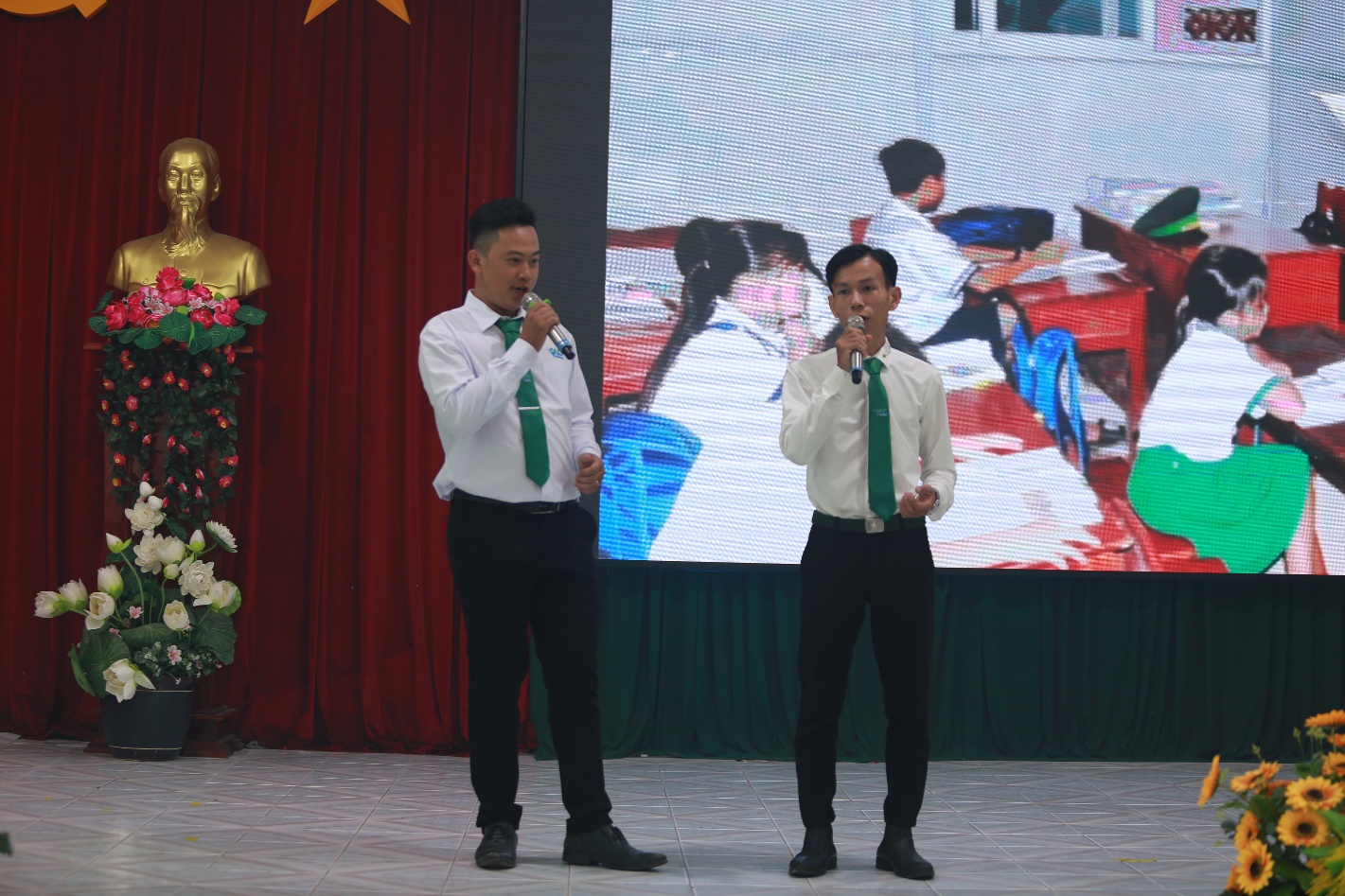 Hình 8. Thầy Trần Minh Tố – Bí thư Đảng ủy, Hiệu trưởng nhà trường ôn lại truyền thống ngày Nhà giáo Việt Nam.