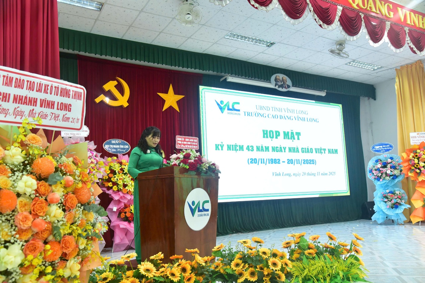 Với sự trân trọng và tôn vinh đối với những người đã mang lại nền tảng tri thức, khai sáng và chấp cánh cho ước mơ của bao thế hệ, cô Nguyễn Thị Mỹ Linh – Ủy viên thường vụ Đảng ủy, Phó Hiệu trưởng, Chủ tịch Hội Khuyến học Trường đọc thư chúc mừng thầy, cô giáo nhân ngày Nhà giáo Việt Nam 20/11 của Tỉnh uỷ, Hội đồng nhân dân, Uỷ ban nhân dân, Uỷ ban Mặt trận Tổ quốc Việt Nam tỉnh Vĩnh Long.