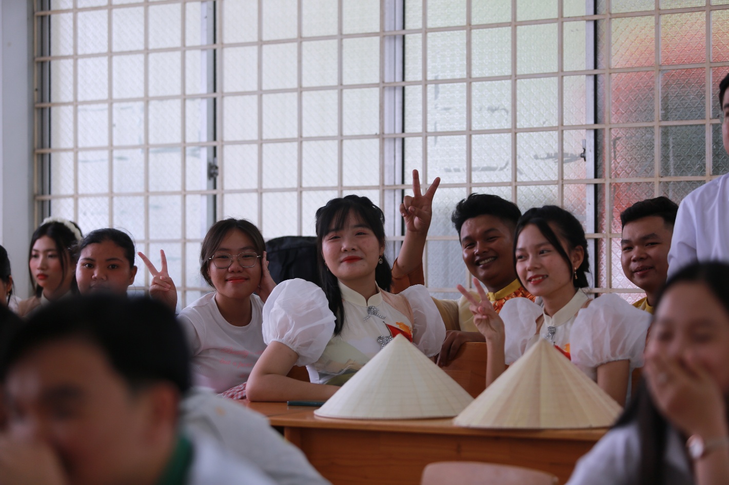 Thay mặt cho HSSV của Trường, bạn Lê Thị Thảo Sương, sinh viên lớp Cao đẳng Thú y 2023 đã phát biểu cảm tưởng, chúc mừng và tri ân thầy cô. Các bạn đại diện HSSV cũng gửi tặng lẵng hoa tươi thắm thay cho lời cảm ơn sâu sắc của học sinh, sinh viên đến toàn thể giảng viên, viên chức Nhà trường.