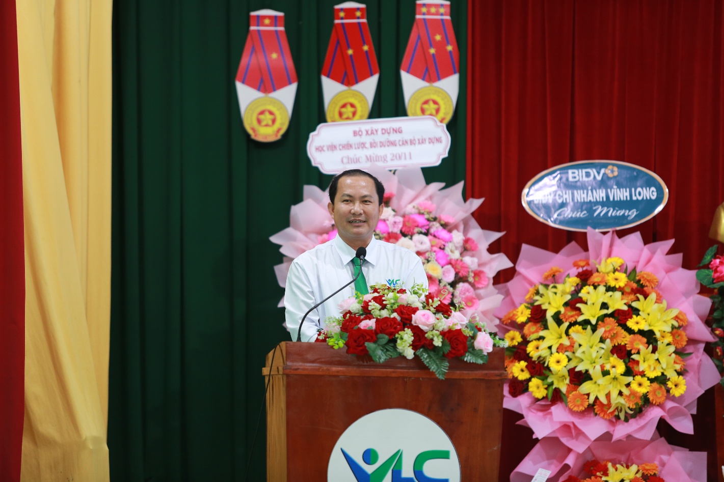 Dân tộc Việt Nam ta từ ngàn đời nay đã có một truyền thống quý báu được lư truyền và phát huy qua bao thăng trầm của lịch sử dựng nước và giữ nước. Để ghi nhớ truyền thống quý báu đó, thầy Trần Minh Tố - Bí thư Đảng ủy, Hiệu trưởng Nhà trường đã bồi hồi, xúc động cùng ôn lại truyền thống vẻ vang và ý nghĩa của Ngày Nhà giáo Việt Nam, cũng như chặng đường 5 năm nổ lực phấn đấu đầy tự hào của tập thể thầy và trò của Nhà trường. Đại diện Nhà trường, thầy cũng gửi lời cảm ơn sự quan tâm, hỗ trợ, đồng hành của quý đối tác và doanh nghiệp đối với Nhà trường trong suốt thời gian qua và cảm ơn về những kệ hoa tươi thắm đã gửi tặng cho Nhà trường và những suất học bổng đã trao tặng cho HSSV trong ngày hôm nay. Chúc tất cả cùng vững tin để tiếp nối truyền thống quý báu, cùng nhau phát triển vì một tương lai tươi đẹp.