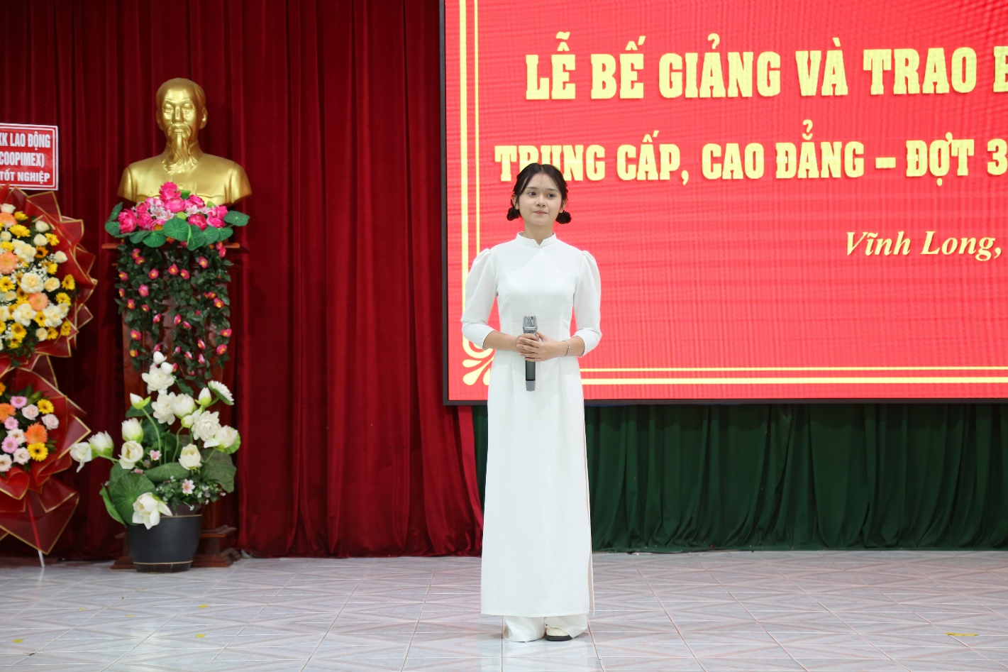 Tại Lễ bế giảng và trao bằng tốt nghiệp, thầy Trần Minh Tố - Bí thư Đảng ủy, Hiệu trưởng nhà trường gửi lời chúc mừng đến các tân cử nhân đã gặt hái được thành công trên con đường học tập. Đại diện Nhà trường, thầy gửi lời cảm ơn sâu sắc đến học sinh, sinh viên, quý phụ huynh và doanh nghiệp đã tin tưởng lựa chọn và đồng hành cùng Trường Cao đẳng Vĩnh Long trong suốt thời gian qua. Nhân dịp này thầy cũng gửi lời dặn dò đến các phòng, khoa và giáo viên chủ nhiệm hãy quan tâm hơn nữa đến các bạn chưa được tốt nghiệp trong đợt này, để các bạn cũng sớm có được ngày vui như hôm nay.