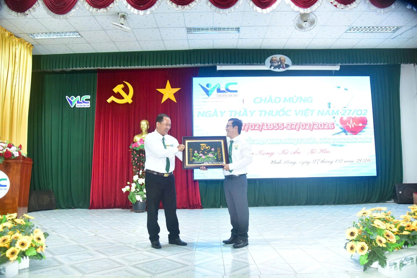 Kết thúc buổi họp mặt, ThS. Trần Minh Tố – Hiệu trưởng nhà trường đã phát biểu chỉ đạo, nhấn mạnh tầm quan trọng của việc không ngừng đổi mới và nâng cao chất lượng đào tạo nhân lực ngành y tế trong kỷ nguyên mới, đồng thời gửi lời chúc mừng sức khỏe đến toàn thể cán bộ, y bác sĩ nhân ngày truyền thống của ngành. Thay mặt lãnh đạo Nhà trường, thầy đã trân trọng trao tặng cho Khoa Y dược món quà không chỉ là sự ghi nhận những nỗ lực của tập thể Khoa mà còn gửi gắm niềm tin của Ban Giám hiệu đến quý thầy cô và sinh viên luôn giữ vững tâm huyết, đạo đức nghề nghiệp trong sự nghiệp đào tạo và chăm sóc sức khỏe nhân dân.